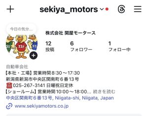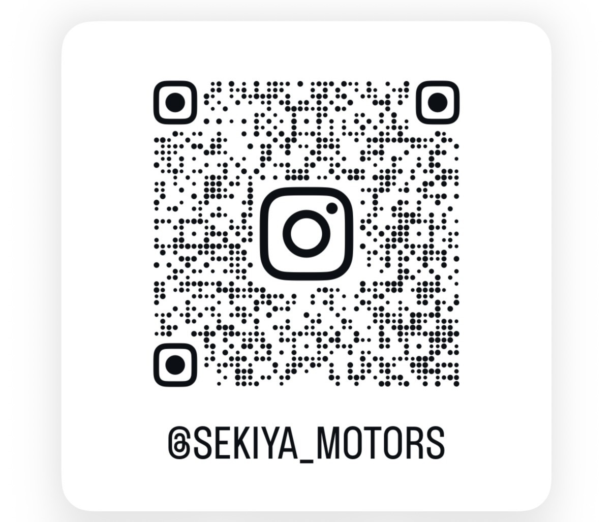 下記のQRコードを読み取って頂くか、「@sekiya_motors」で検索でもアカウントが表示されます。
